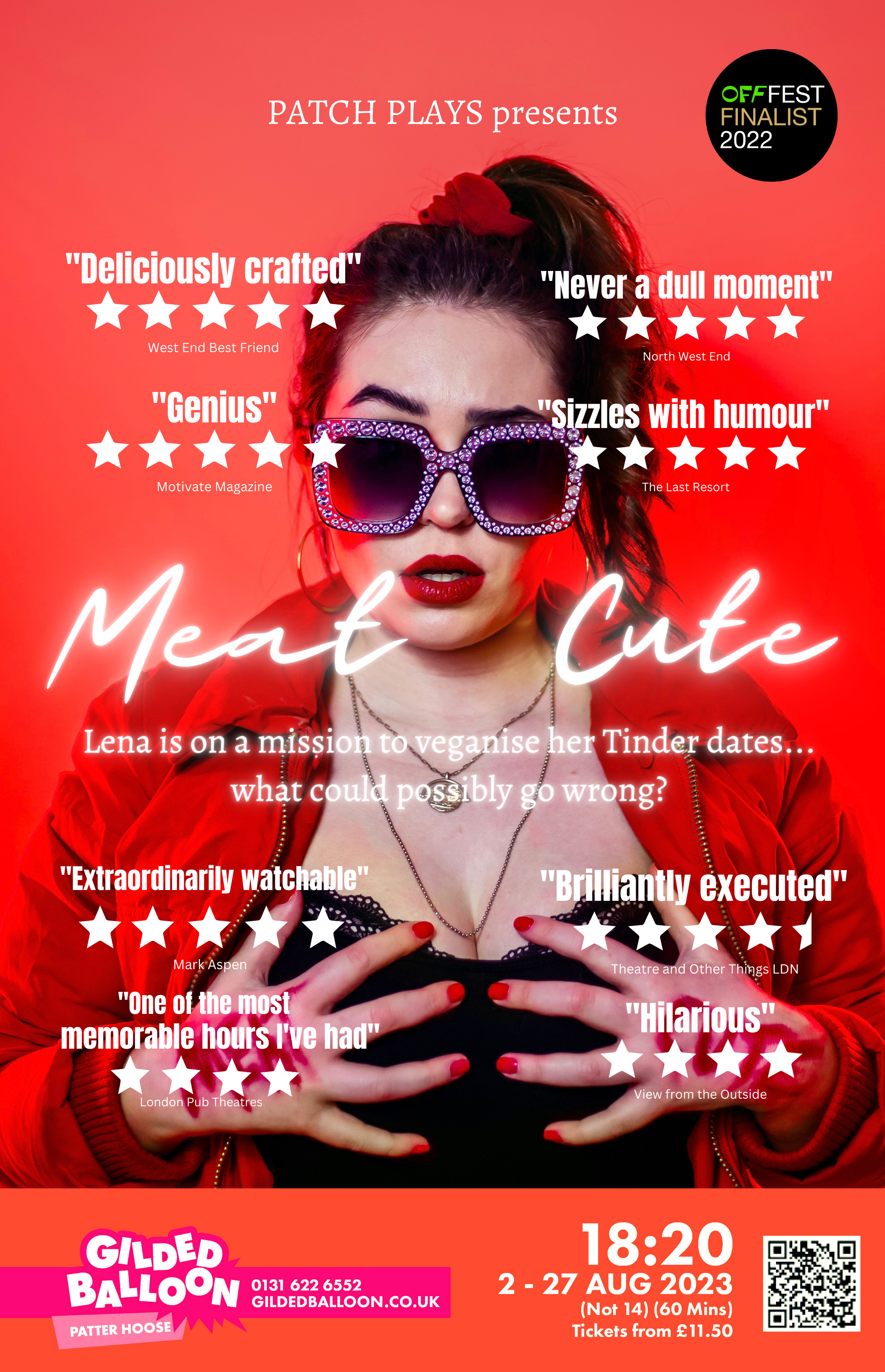 The Offie Finalist, Critically Acclaimed ‘Meat Cute’ by Bibi Lucille performs at Gilded Balloon 2-27 August at 6:20pm.